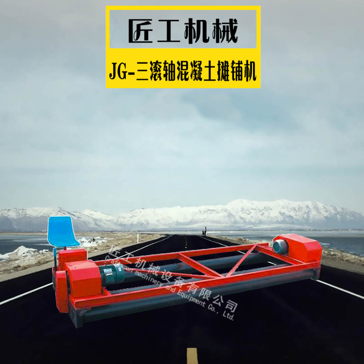 JG219型A(三軸)中的一條軸負(fù)責(zé)行走,一條軸負(fù)責(zé)整平,再一條軸負(fù)責(zé)提漿B(四軸)除上述三條軸外,在提漿軸前部增加一條螺旋狀的攪龍軸,起到刮平分料作用及減輕后幾條軸的負(fù)擔(dān),使攤鋪效果更為明顯。
